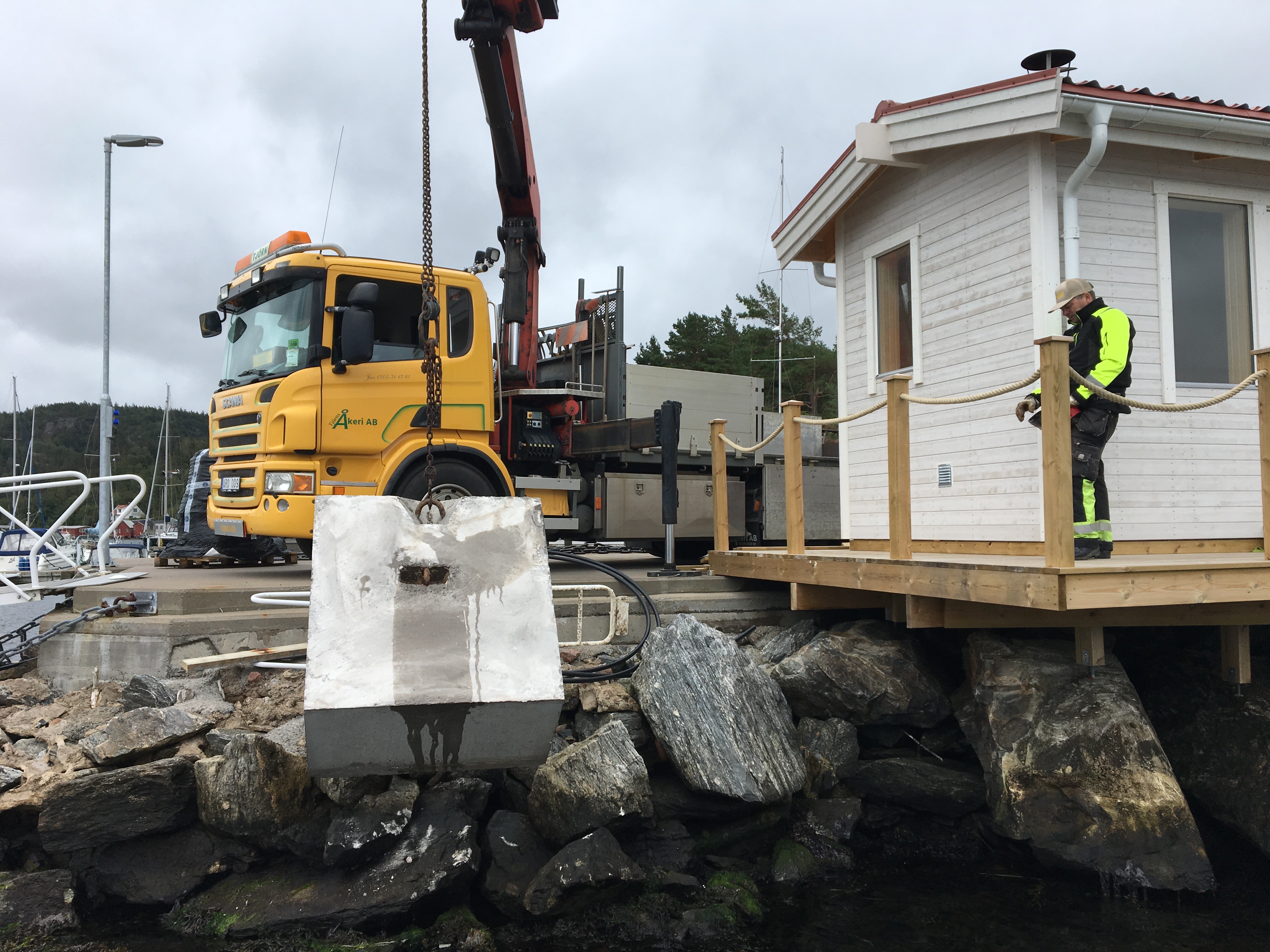 2 tons ankare på väg ner till arbetsflotten för vidare förankring i en större hamn på Orust
